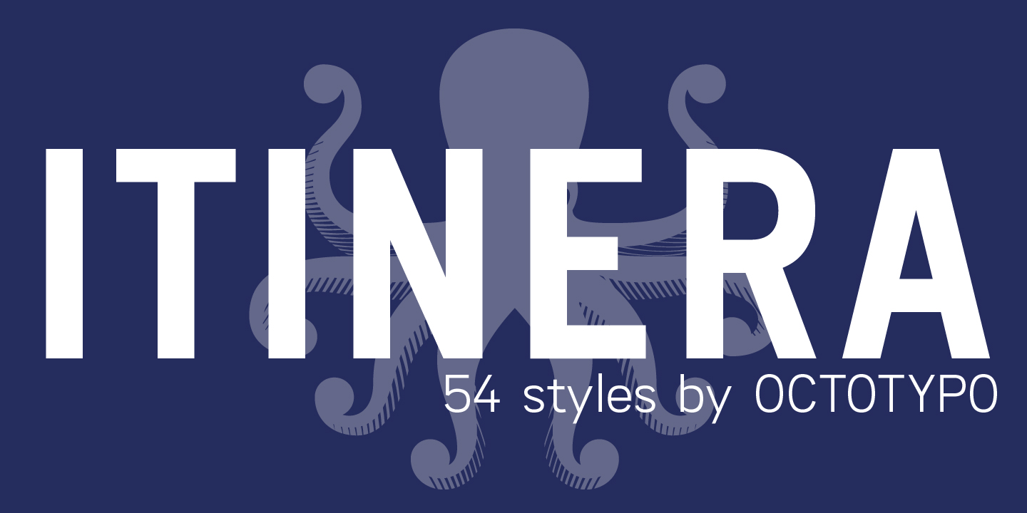 Itinera is inspired by the typographic style of road signs, from old street nameplates to the legendary Route Nationale 7. The era when you could drive without a seatbelt, when children smoked as many cigarettes as their parents in the car, when you could sleep on the rear shelf and air conditioning didn’t exist. Its design adopts the geometric and standardized codes of these signs and adds a subtle vintage touch within a modern design that optimizes letter readability. Itinera comes in Regular, Narrow and Wide with their associated italics. It will perfectly complement your editorial, poster or signage projects and will give a timeless character to all your visual identities and logos.